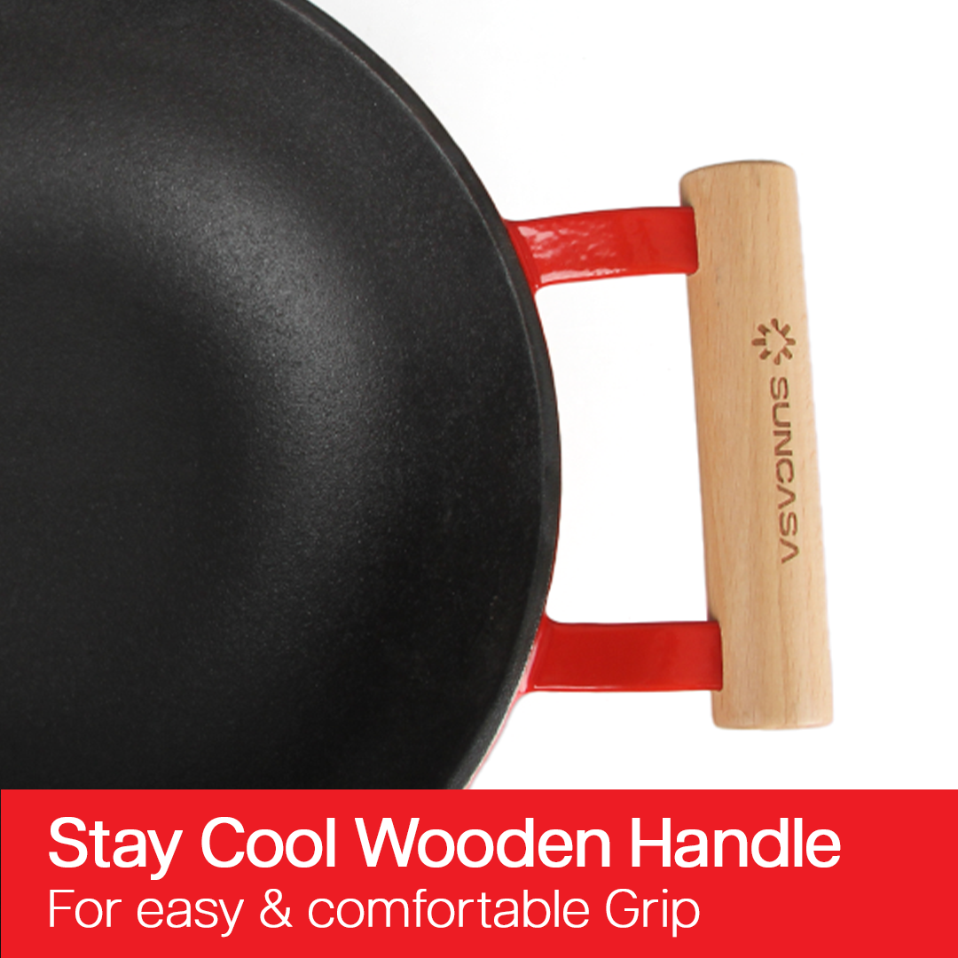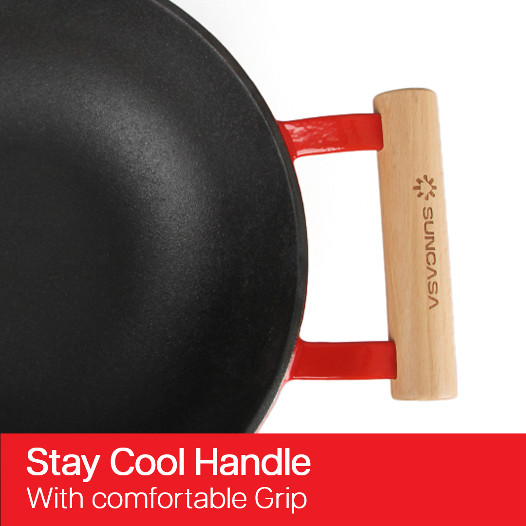 SUNCASA Castella Pre Seasoned Cast Iron Kadai, 24cm/ 2.2L