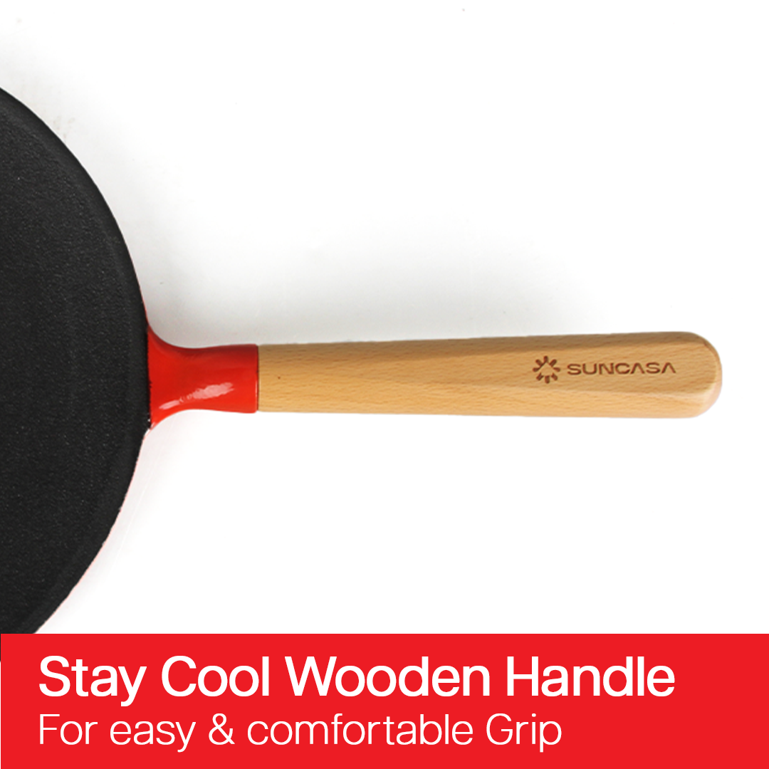 SUNCASA Castella Pre Seasoned Cast Iron Roti Tawa, 26cm