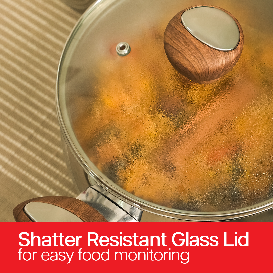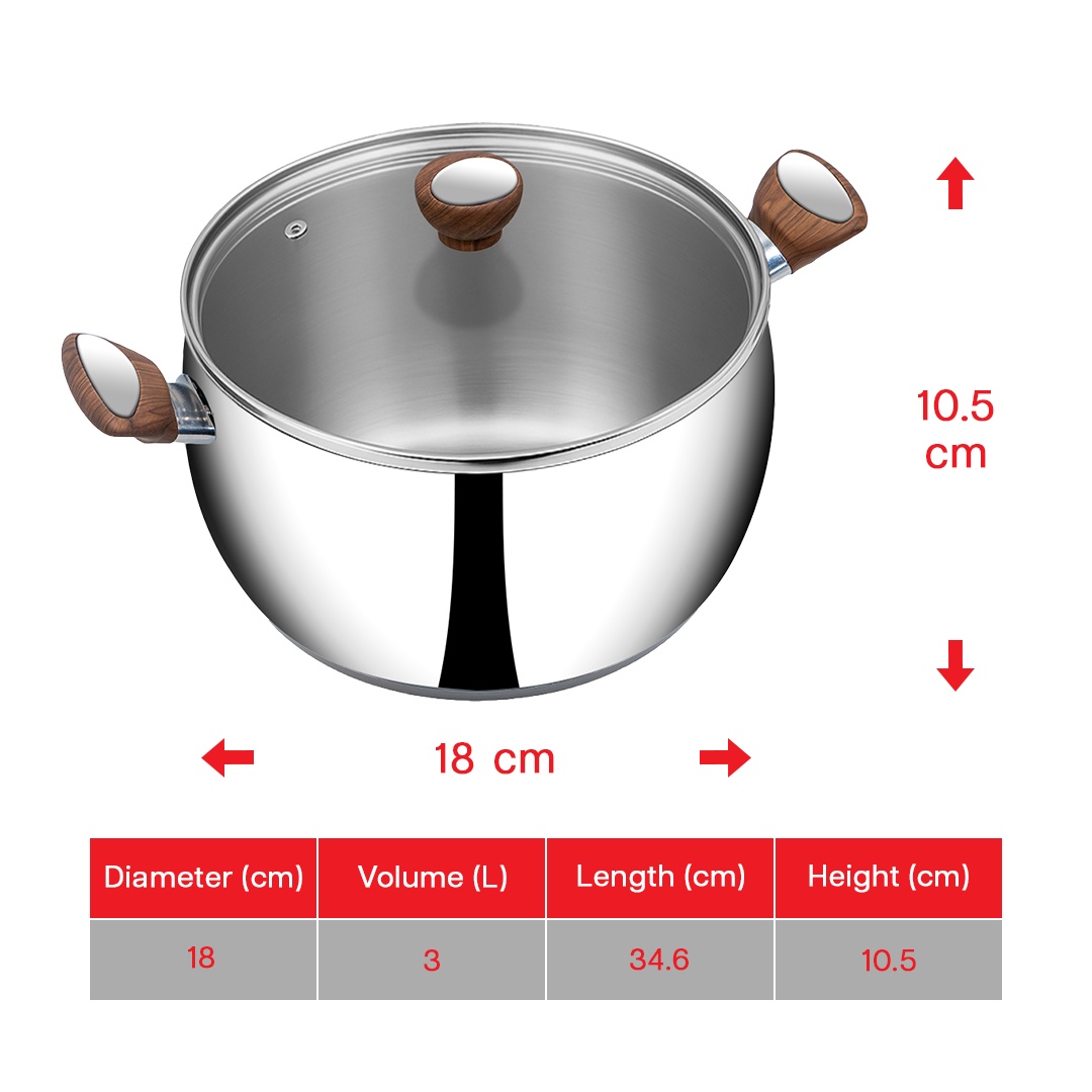 SUNCASA Impact pro Luxe Belly Casserole with Glass lid, 18 cm
