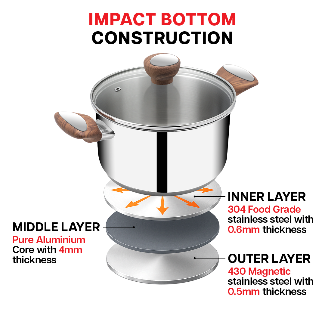 - Impact-forged bottom ensures even heat distribution and faster cooking