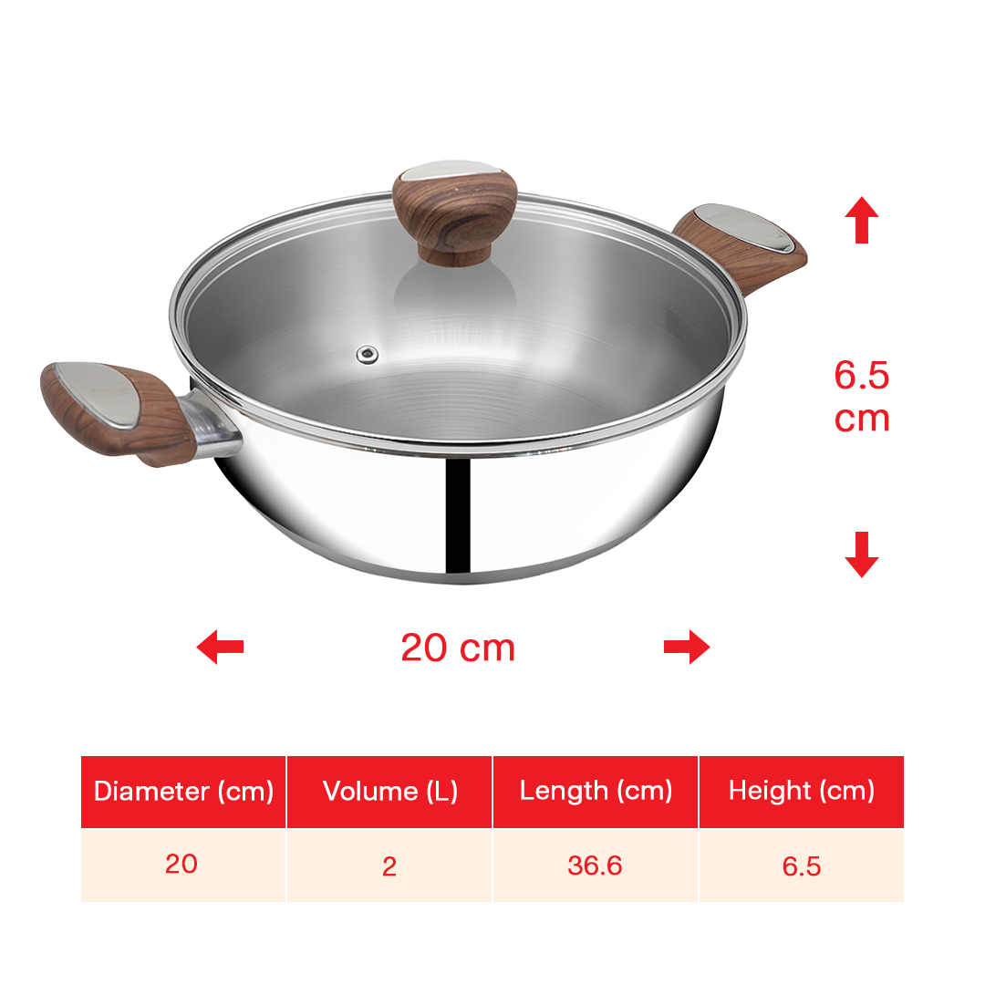 SUNCASA Impact Pro Luxe Flat Bottom Kadai with Glass Lid, 20 cm