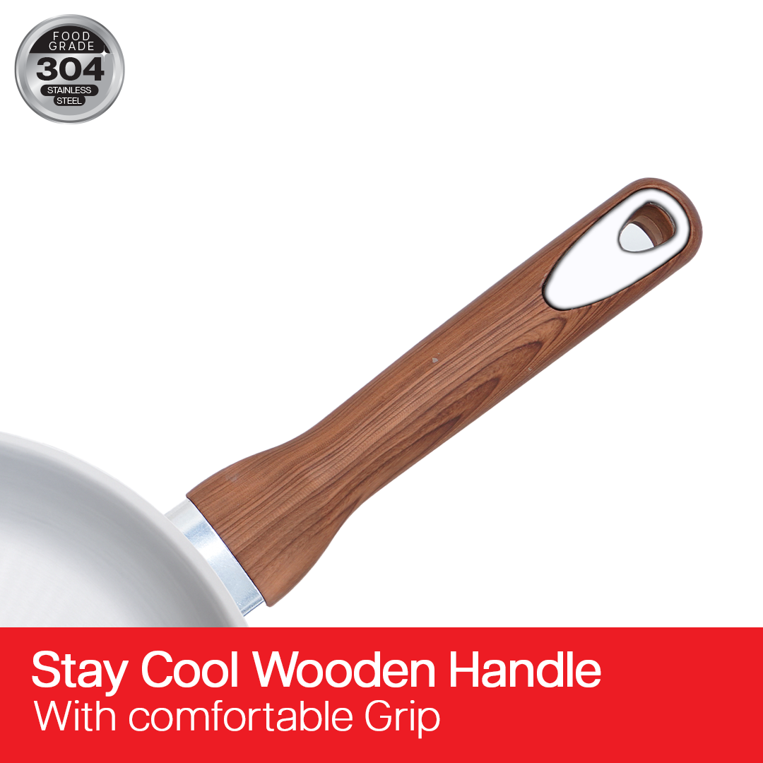 - Equipped with a sturdy wooden-finish handle for ergonomic comfort and safe handling
