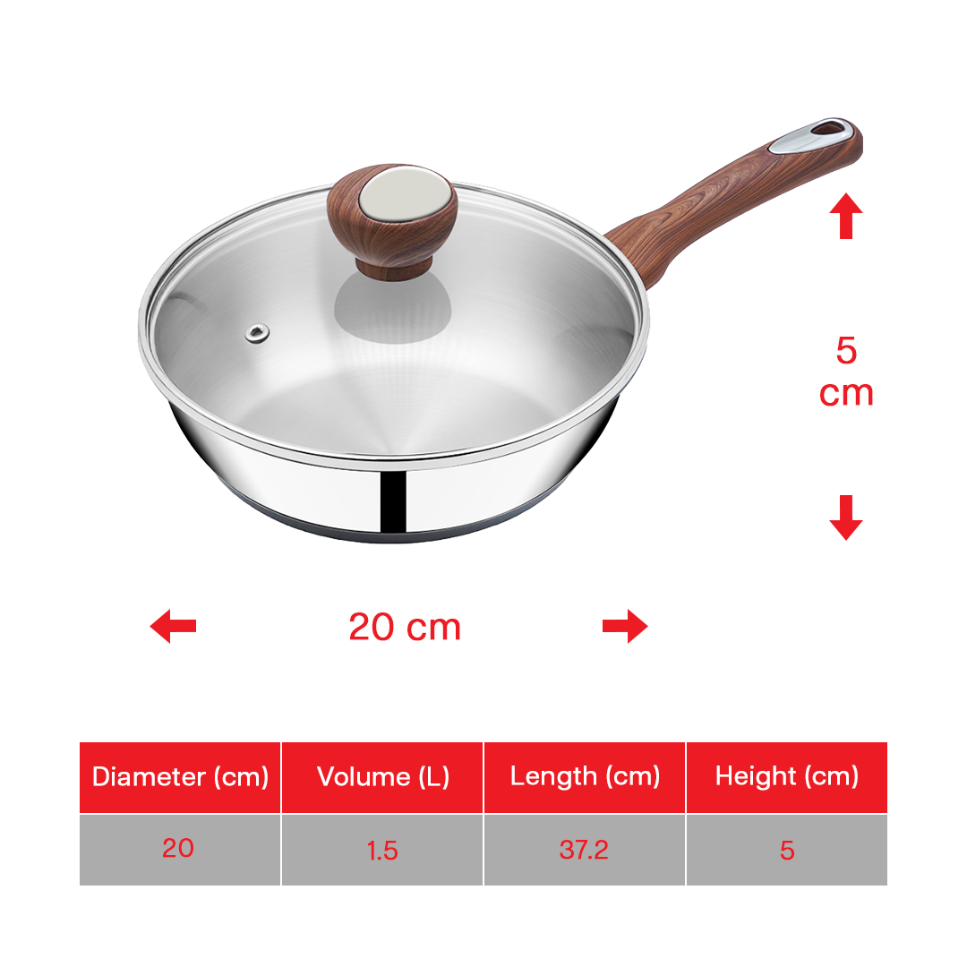 SUNCASA Impact Pro Luxe Frypan with Glass Lid, 20cm