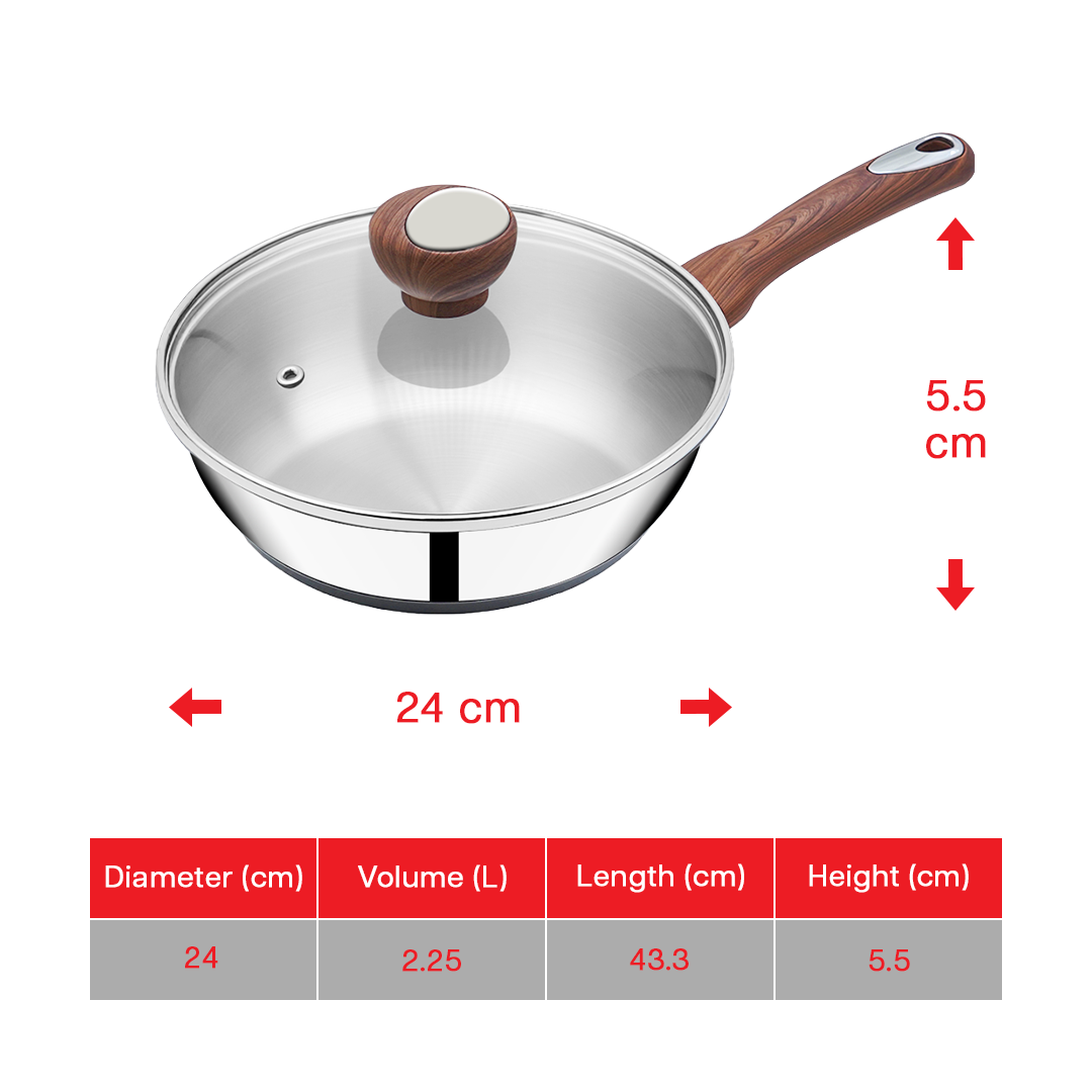 SUNCASA Impact Pro Luxe Frypan with Glass Lid, 24cm
