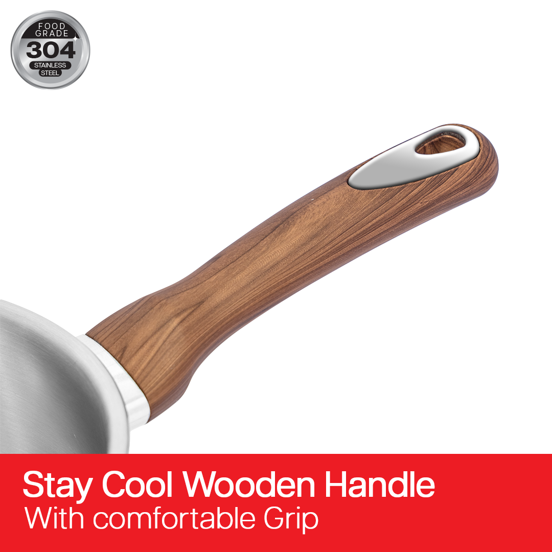 - Features an impact-forged tri-ply base – 304 stainless steel, aluminum, and 430 magnetic steel – for even heat distribution and faster cooking without burning