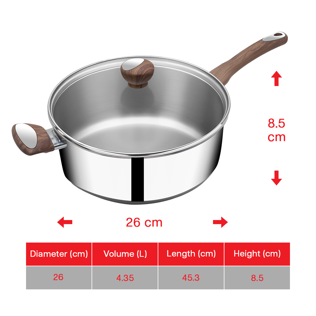 SUNCASA Impact Pro Luxe SautePan with Glass Lid, 26cm