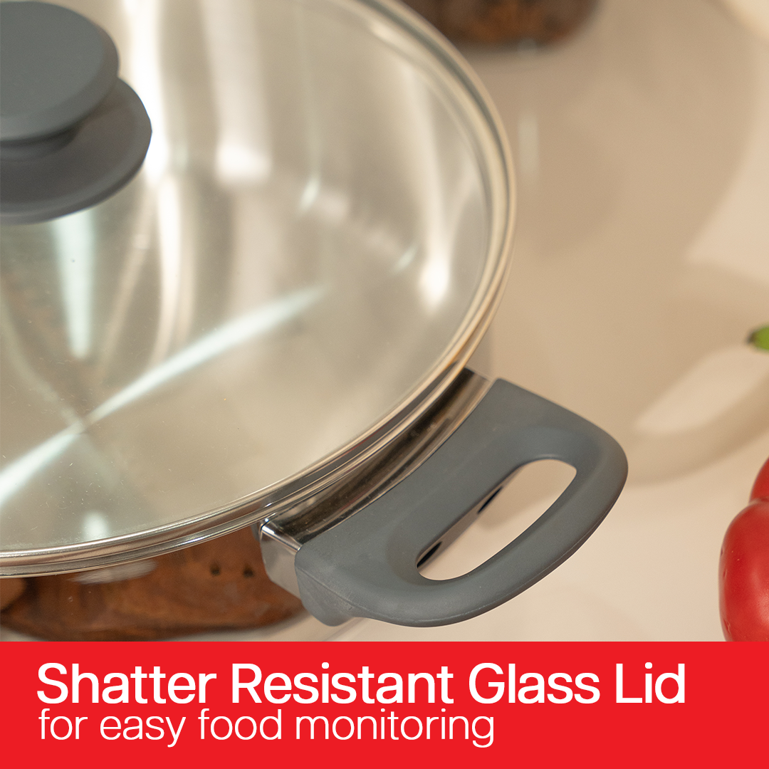 SUNCASA Impact Pro Stainless Steel Deep Kadai with Glass Lid, 20cm