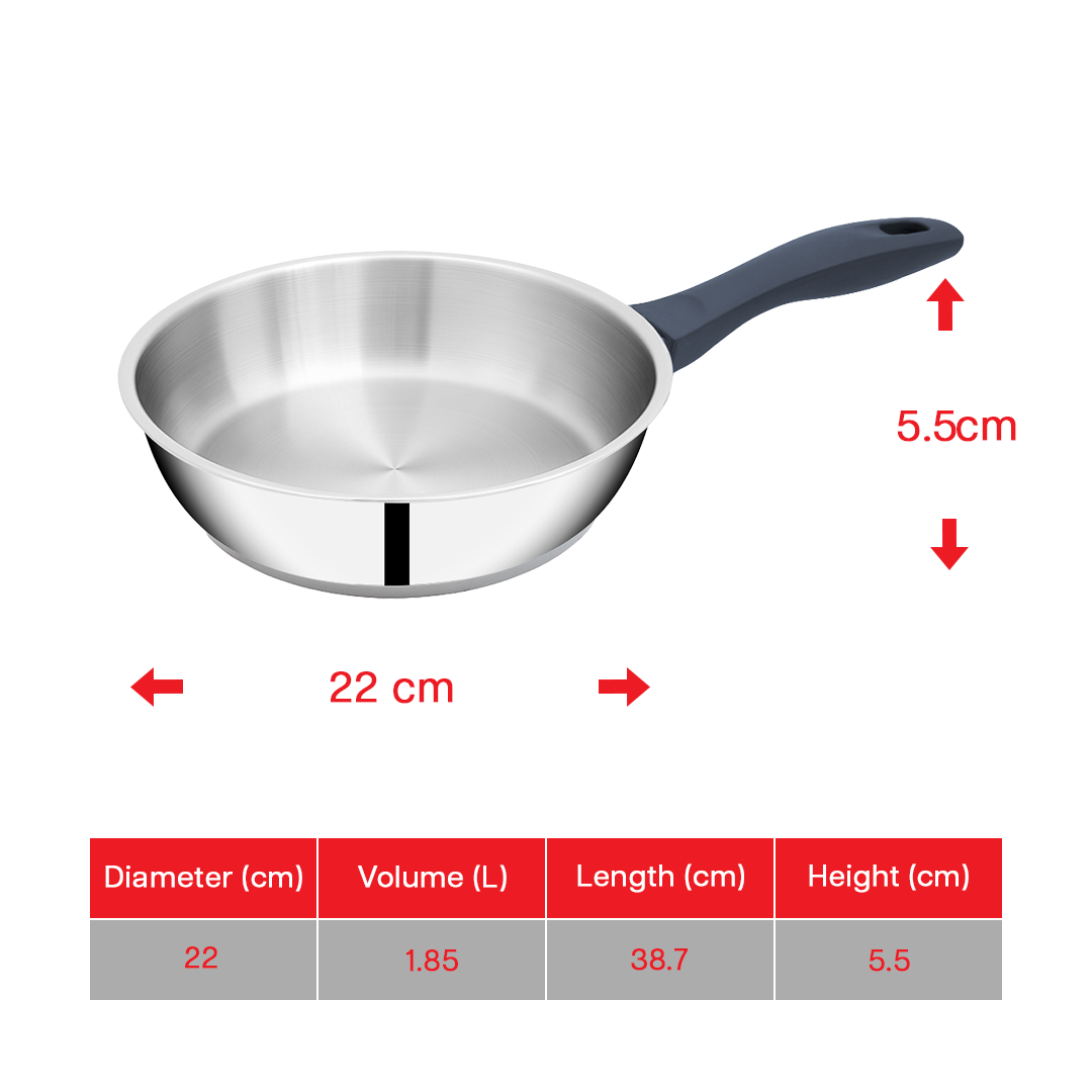 SUNCASA Impact Pro Stainless Steel Frypan, 22cm