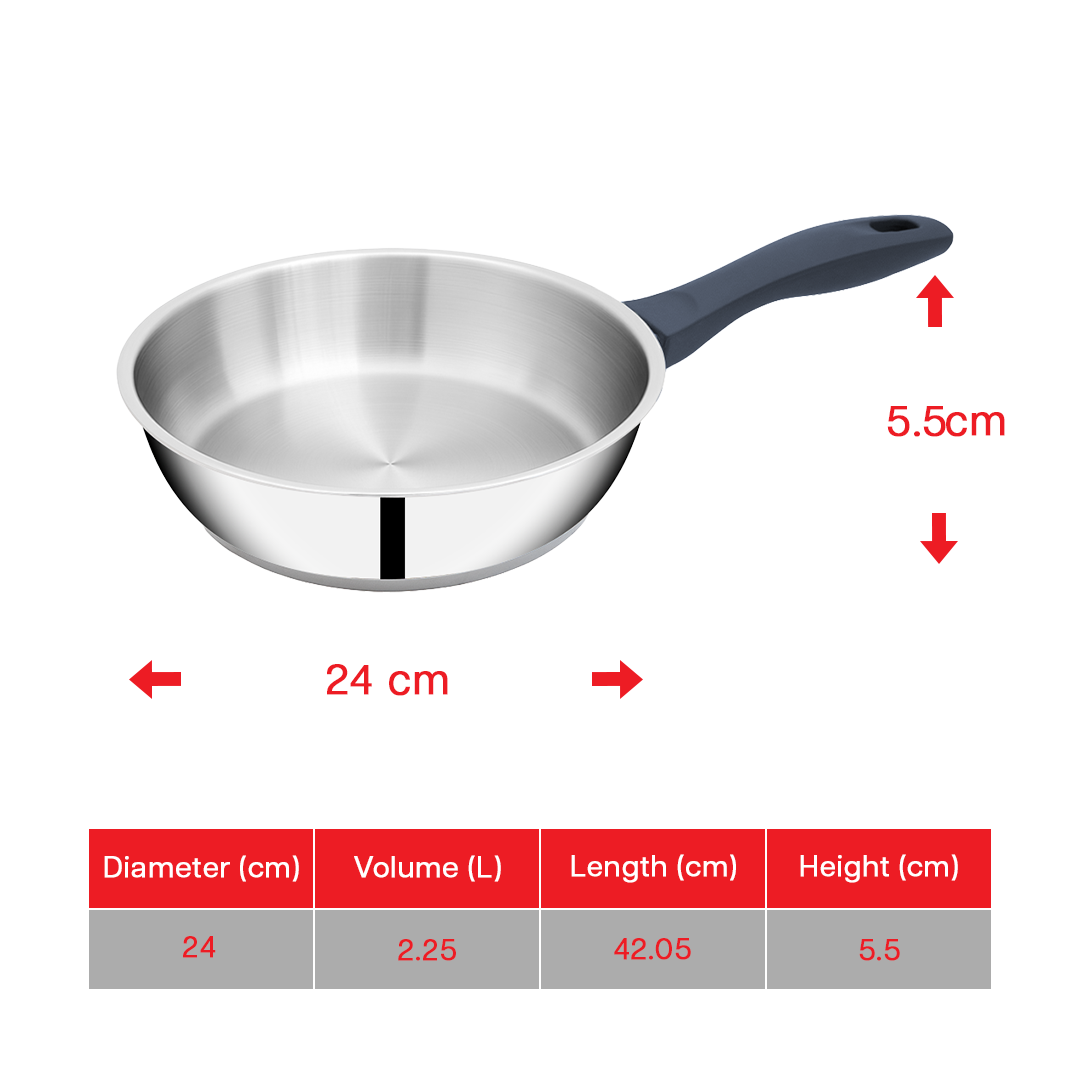 SUNCASA Impact Pro Stainless Steel Frypan, 24cm