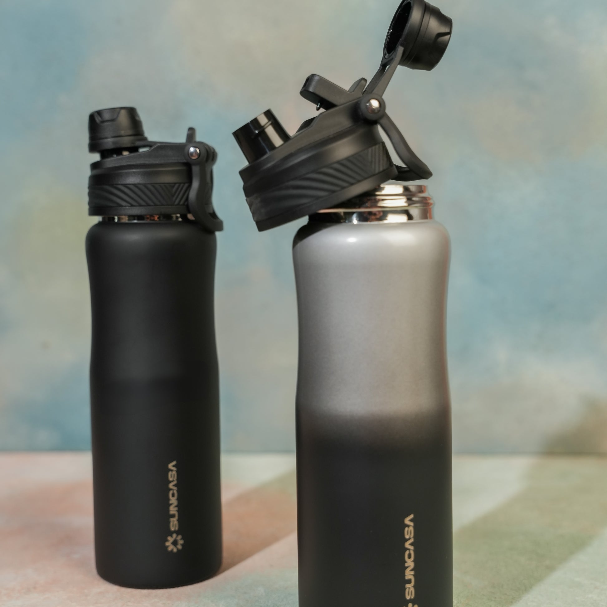 The Suncasa Oceana Sipper Flask mixes aesthetic design with high performance, making it perfect for both sports and everyday hydration. Made from 304 food-grade stainless steel, it's vacuum insulated to keep drinks cold for up to 24 hours and hot for up to 18 hours. The leak-proof sipper cap with handle ensures spill-free sipping on the go, while the air-tight, odour-free, and eco-friendly build keeps every sip fresh. Our Sipper bottles are available in sleek color combinations and two sizes (600 ml & 800 ml). Get this for gym, office, school, travel, or outdoor adventures.