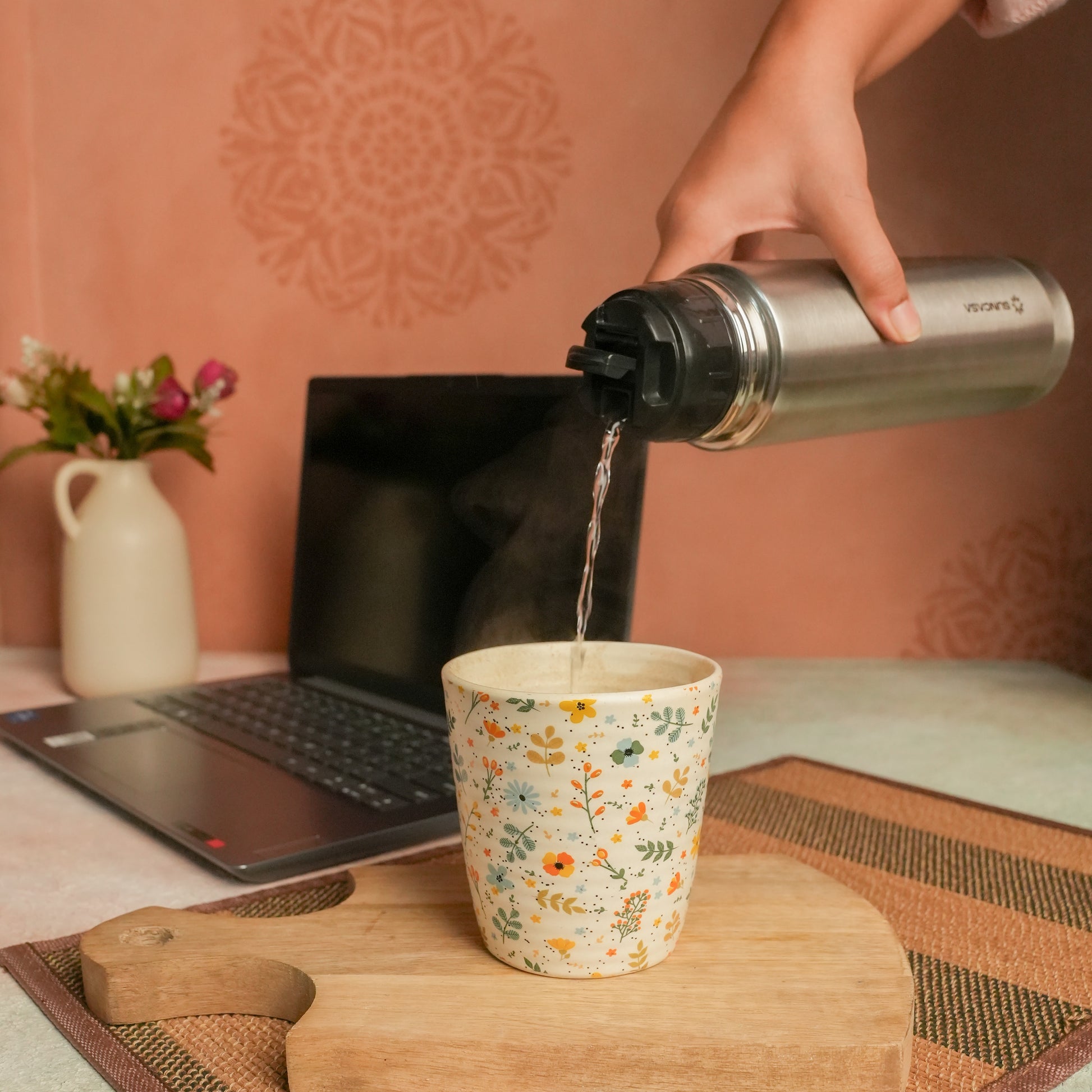 The Suncasa Oceana Vacuum Flask is crafted from 304 food-grade stainless steel for safe, durable, and eco-friendly hydration. With vacuum insulation, it keeps beverages hot for up to 24 hours and cold for up to 24 hours, making it ideal for daily use. Its leak-proof, airtight body prevents spills, while the odour-free finish preserves the natural taste of your drinks. ISI certified, sturdy, and easy to clean, this flask is a reliable companion for office, school, gym, or travel.