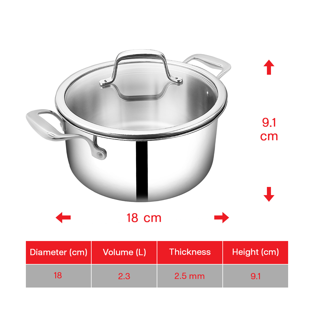 SUNCASA Trismart Triply Casserole with lid,18 cm