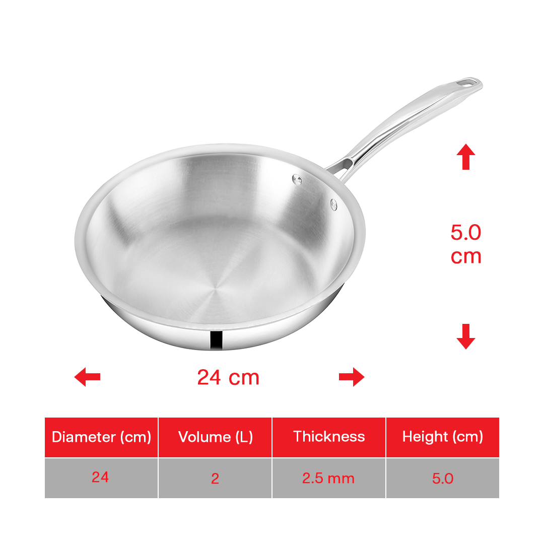 SUNCASA Trismart Triply Frypan with lid, 24 cm