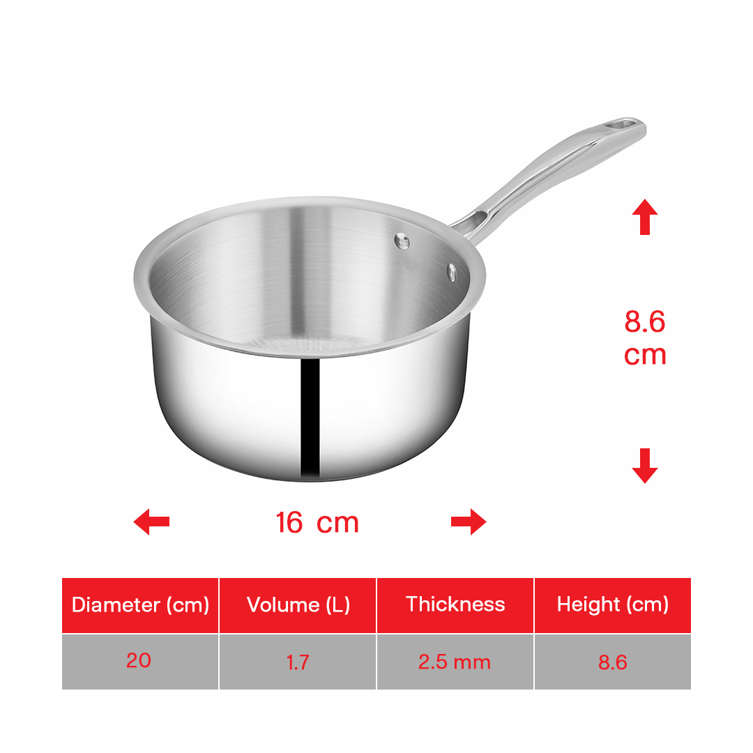 SUNCASA Tri Smart Triply Sauce pan with lid, 16 cm