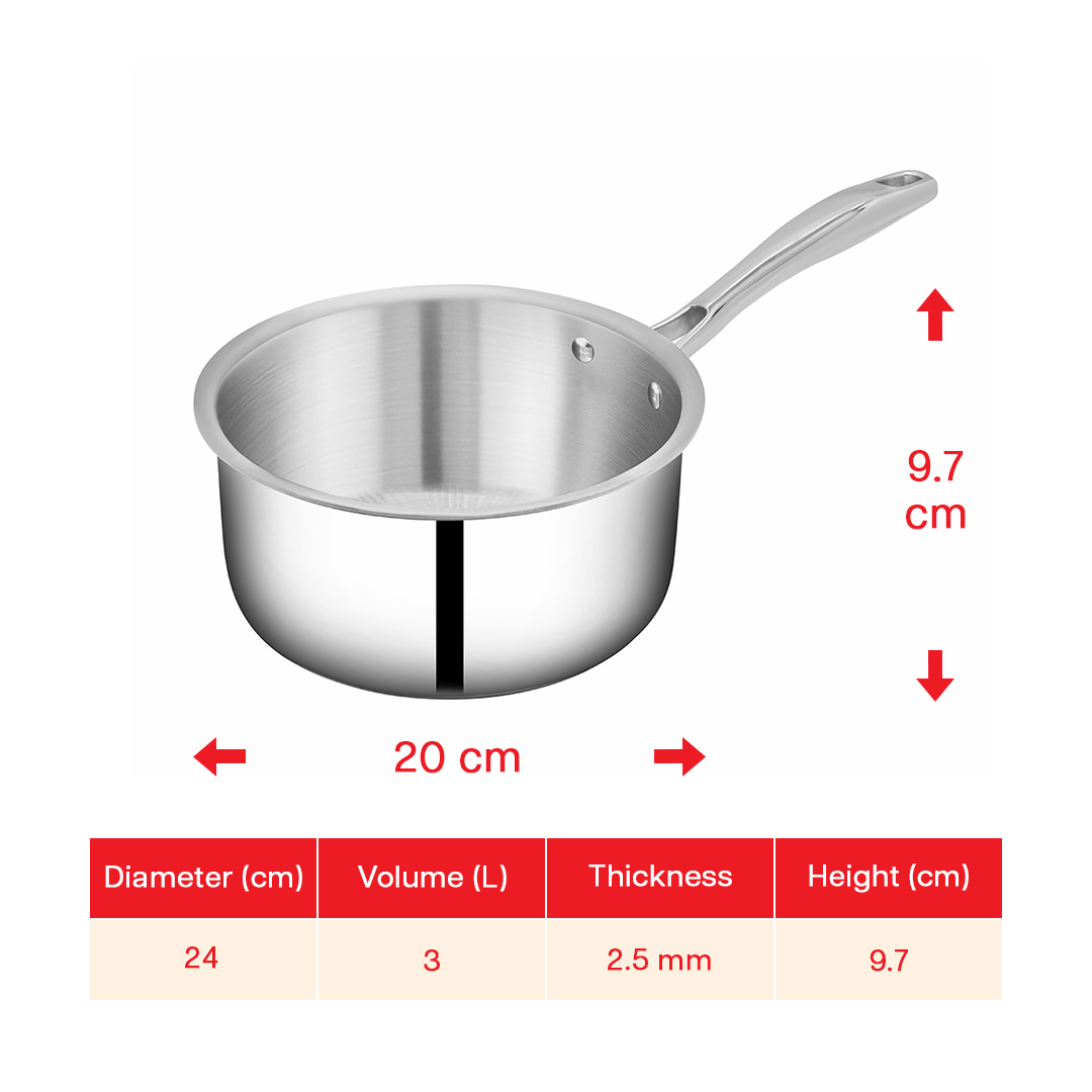 SUNCASA Trismart Triply Sauce pan with lid, 20 cm
