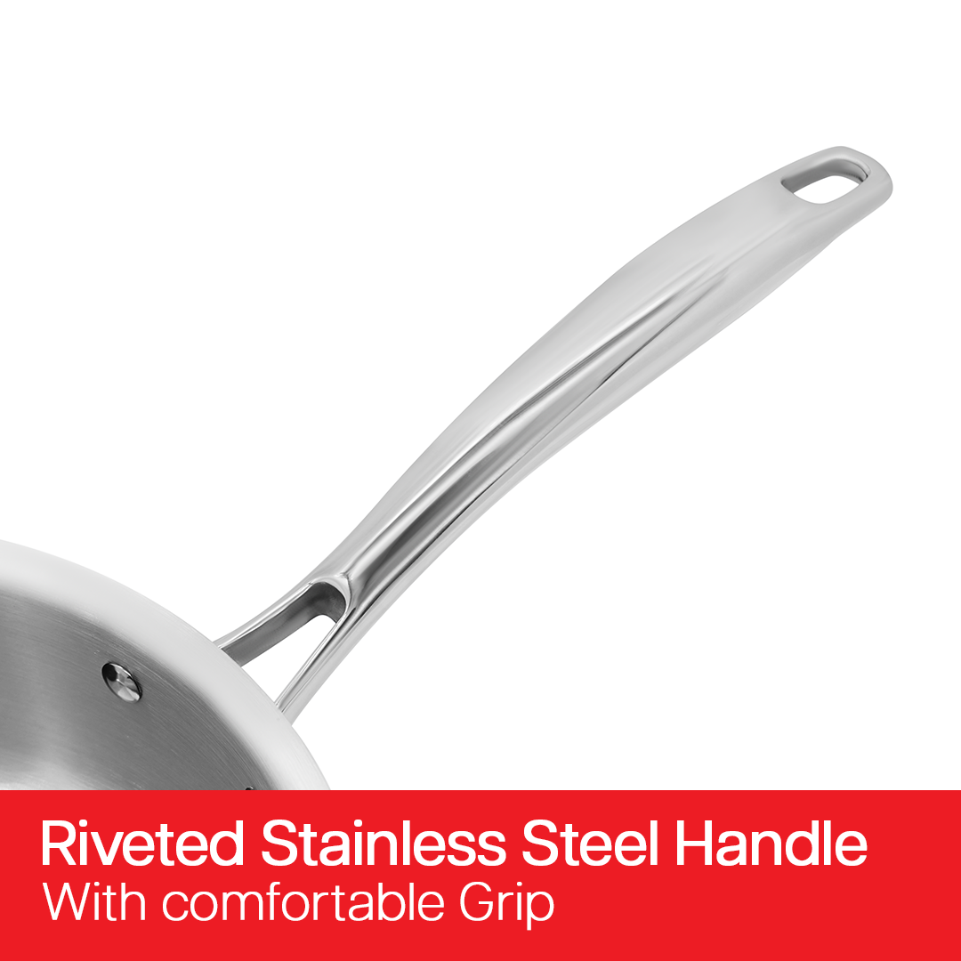 - Built with Three-Layer Triply construction – 304 food-grade stainless steel, aluminum core, and 430 magnetic stainless steel exterior