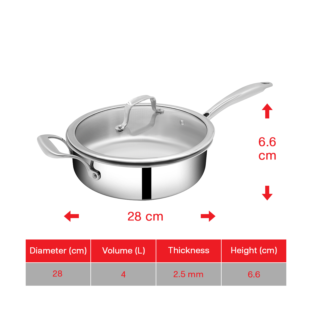 SUNCASA Trismart Triply Sautepan with lid, 28 cm